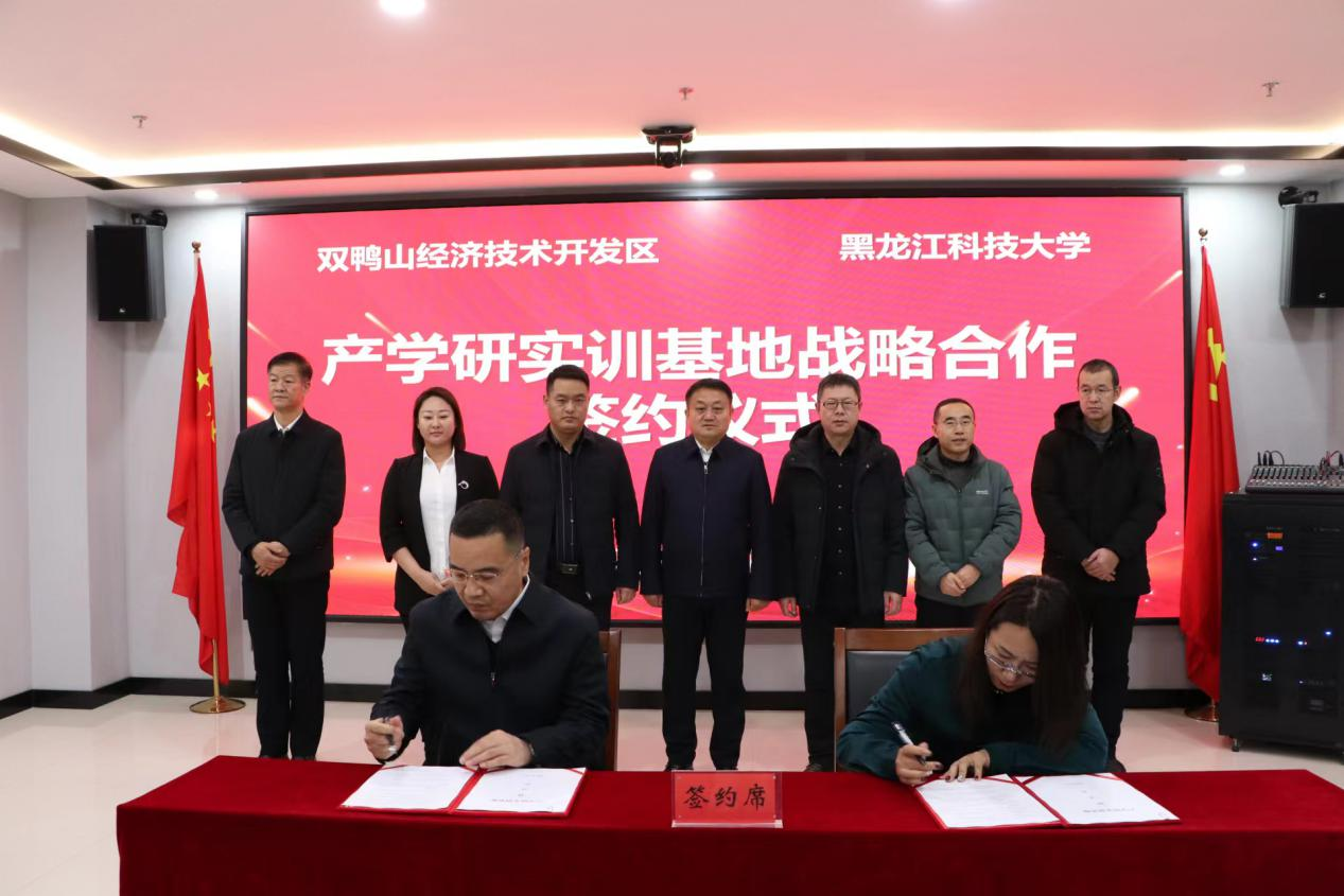 2024年12月13日下午,材料科学与工程学院与双鸭山经济技术开发区建立专家工作站、产学研实训基地合作签约仪式在双鸭山科创中心四楼会议室隆重举行。同时,与黑龙江省墨砾新型材料有限责任公司签订了校企合作协议。