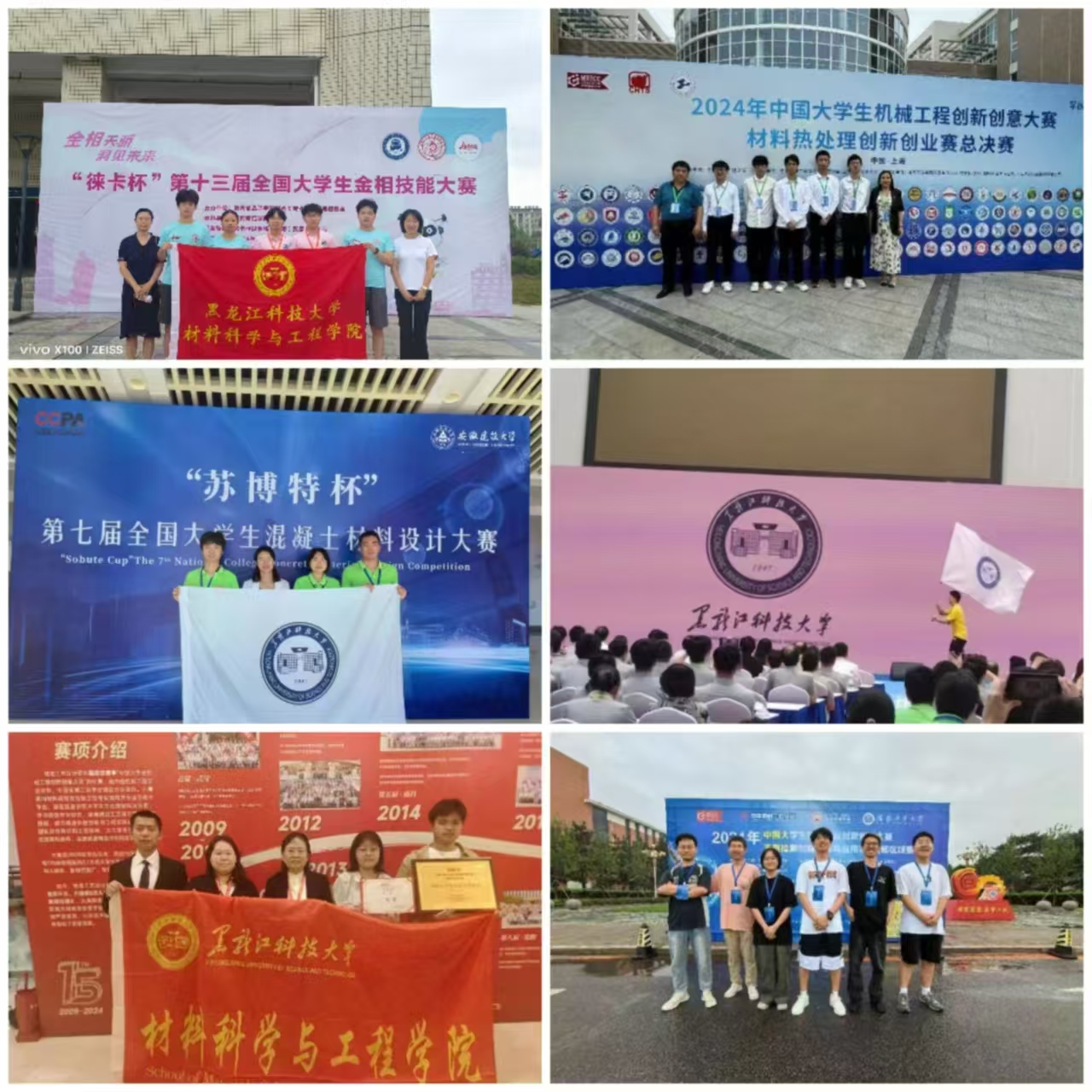 2024年度暑期7.11-8.4日之间,材料科学工程学院教师带领学生参加中国大学生机械工程热处理创新创业大赛、铸造工艺大赛、第十三届全国大学生金相技能大赛、金相大会、第七届全国大学生混凝土材料设计大赛及创新创意大赛无损检测创新实践与应用赛北部赛区等五项国赛,指导教师克服暑期炎热、参赛地突发暴雨等困难,带领学生在各项大赛中取得了优异成绩。