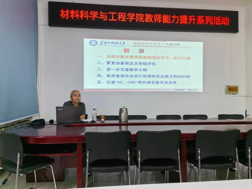 周广林教授以30多年的教学管理和评估经历,对本次评估的重要性和特殊性进行了独特的阐述,让教师对评估的认识有所提高。结合2022版培养方案,周广林教授对培养方案的制定,对指标点的分解,对矩阵的合理性进行了详细介绍,并对教学大纲的规范性,尤其是过程考核的合理性,深入浅出讲授了教学大纲等教学文件的重要性。对于毕业设计,相关文件的规范性和“双导师”是重要评估内容,是体现毕业设计水平的指标,对后续的毕业设计工作起到引领作用。对于考试课程,考题内容需要满足课程指标点,对毕业要求起到支撑作用,考试试题的设计成为以后教学的一个重要内容。教学方面,重点对撰写教案方面给予了建议,他指出教案要基于OBE理念,注重导课,融入思政,教学有反思,并重视信息技术辅助教学等。