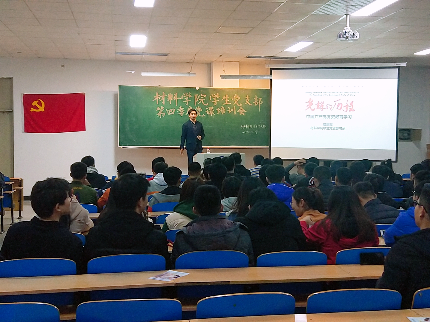 11月8日,beat365中文官方网站学生党支部于教学主楼EN0301召开2018年下半年主题党课培训,本次培训的主题是《光辉的历程——中国共产党党史学习》,学院全体党员、本学期确立的积极分子共计160余人参加培训,beat365中文官方网站学生工作办公室主任、学生党支部书记邬丽群同志主讲。