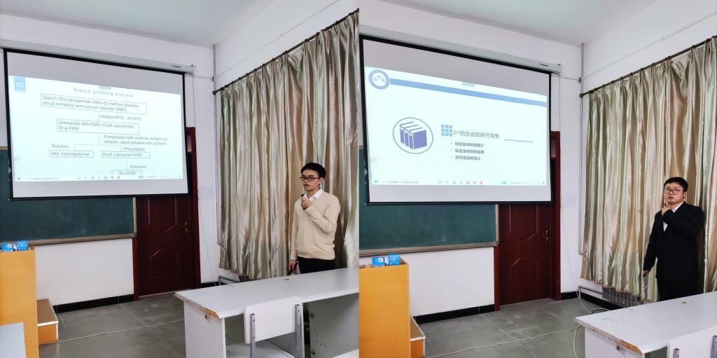 在论坛交流环节,获论坛优秀论文的10名研究生以学术报告的形式展示了自己的研究成果,报告过程中,线上线下老师点评、师生互动环节紧凑、交流气氛热烈,学术氛围浓厚。此外,论坛上三个学院教师分别以《师生合作共赢共攀科学高峰---浅谈新时代下导师与研究生和谐关系的构建》《环肽药物的光诱导合成及抗肿瘤活性研究》《铝/镁合金材料研究及应用》《一种新型中温固体氧化物燃料电池阴极材料》为题做了精彩的专题学术汇报。