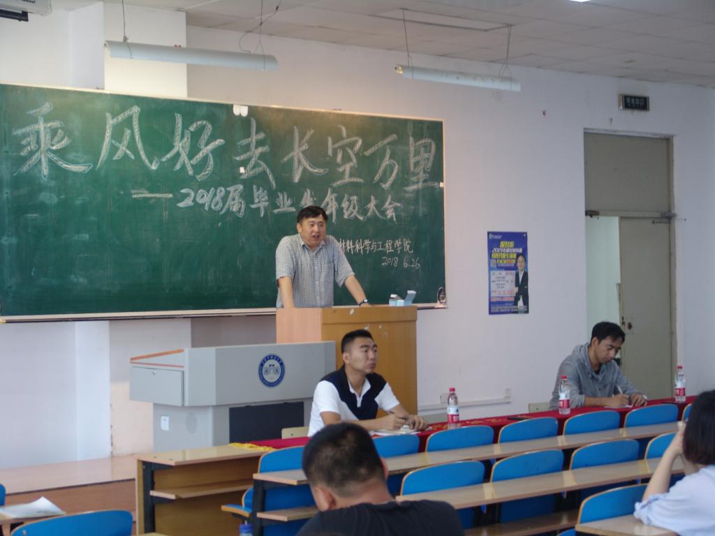 6月26日上午,beat365中文官方网站在主楼EN0303召开“乘风好去、长空万里”2018届毕业生年级大会。学院党委书记马波、学工办主任邬丽群以及200余名毕业生参加会议。会议由就业辅导员王磊主持。