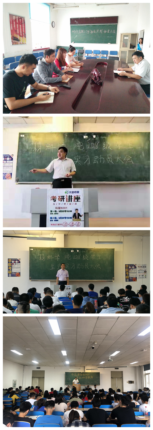 26日上午,学院在教学主楼EN0203召开2016级学生就业与实习动员大会。会上,王振廷院长针对大四学年的整体教学进程安排予以说明,结合实习重点强调了实习安全,遵守实习纪律,注意个人言行,树立材料学子良好形象等方面问题;马书记结合即将到来的就业季,建议毕业生抢前抓早在外实习仍然要做好应聘准备,关注就业信息,抓住九、十月份就业黄金期。